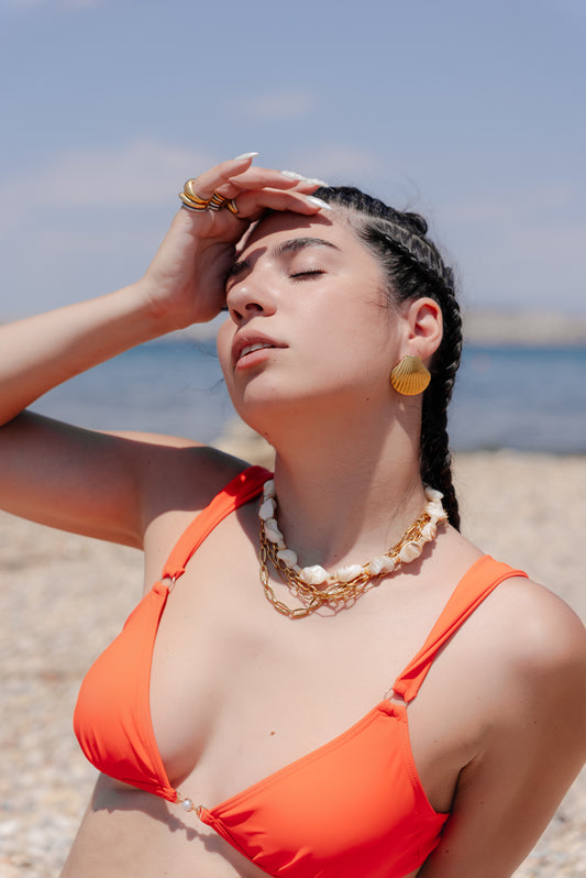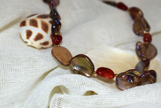 Sunset Pearl – Κολιέ με Φυσικά Κοχύλια και Κοράλι