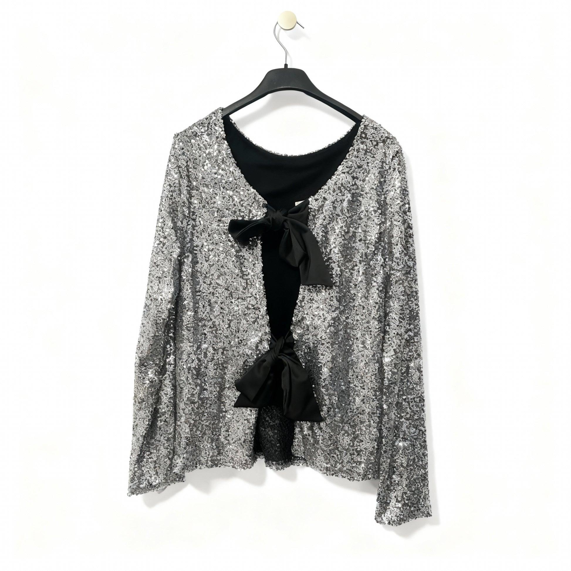 Εντυπωσιακό μπλουζάκι με παγιέτες σε ασημί απόχρωση, ιδανικό για βραδινές και festive εμφανίσεις. Διαθέτει στρογγυλή λαιμόκοψη, μακριά μανίκια και άνετη εφαρμογή που προσφέρει κομψότητα και διακριτική λάμψη. Η shimmering υφή του το καθιστά statement κομμάτι που αναβαθμίζει κάθε outfit.